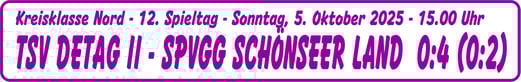 Der direkte Abstieg aus der Kreisklasse wird für die Detag-Reserve immer wahrscheinlicher. Gegen die SpVgg Schönseer Land setzte es trotz optischer Ausgeglichenheit und der ... weiterlesen SPIELDATEN