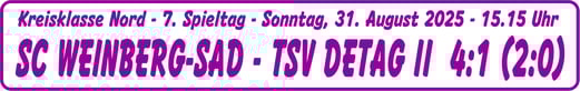 Das Vorhaben, endlich zu punkten, wurde für die Detag-Reserve eigentlich schon in der Anfangsphase über den Haufen geworfen. Da ließen sich die Gastgeber von ... weiterlesen SPIELDATEN