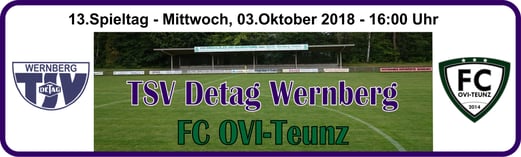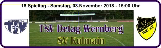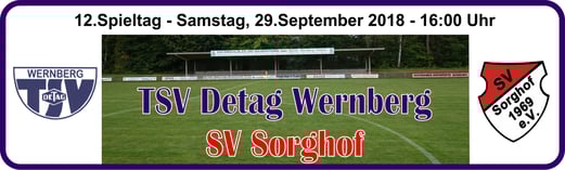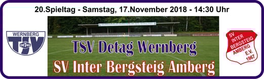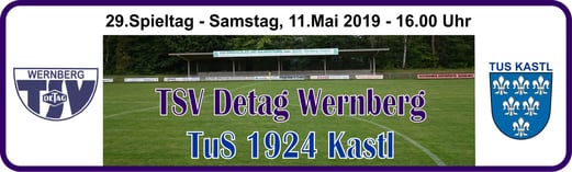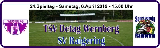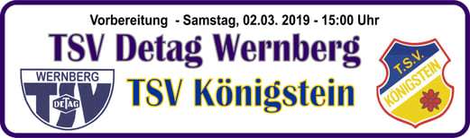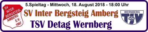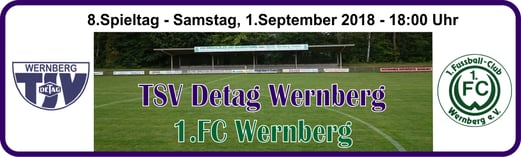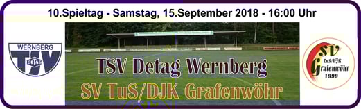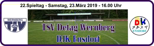 Baumer. - TSV Detag Wernberg: Plößl, A. Reis, P. Luff (64. Mann), Maunz, C. Luff, Hudec, Alabduldryby (37. T. Luff), Moucha, S. Polster (27. Göbl), M. Polster, Häffner -