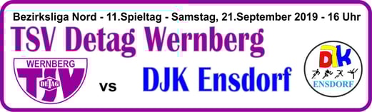16 Uhr tritt der TSV Detag nun im Toto-Pokal-Finale in Teunz gegen den FC OVI-Teunz an. Das Bezirksligaspiel beim SV Hahnbach, das am Sonntag, 27.09. stattgefunden hätte, wird verlegt. SPIELDATEN