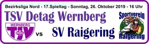 SV Raigering: Th. Heldmann, M. Prechtl, M. Jank, P. Stauber, Moritz Ram (83. A. Hammerl, T. Wrosch, F. Hiltl, N. Seidel (65. Ph. Götz), B. Herbrich,