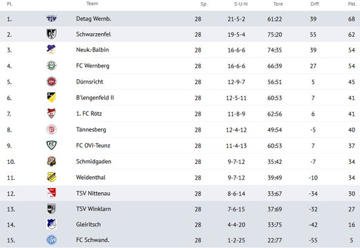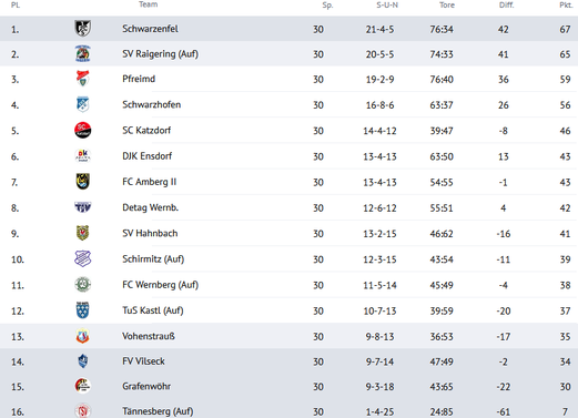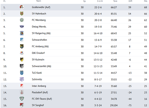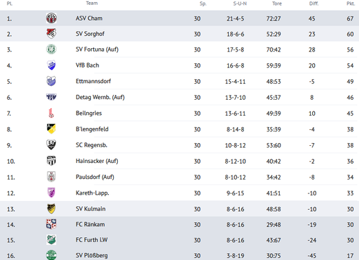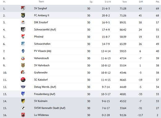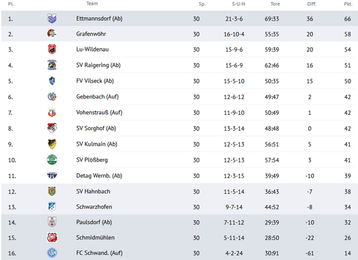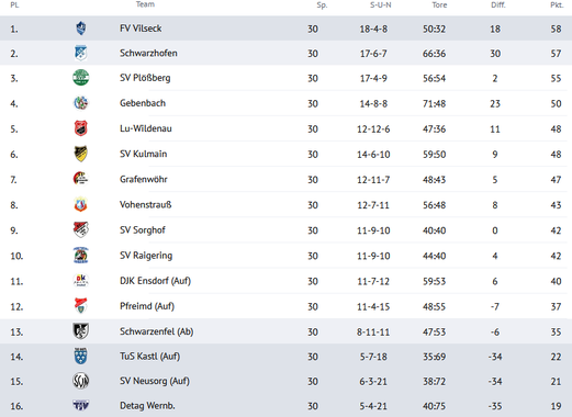 Auf- und Abstieg erfolgte nach dem Punktequotienten.