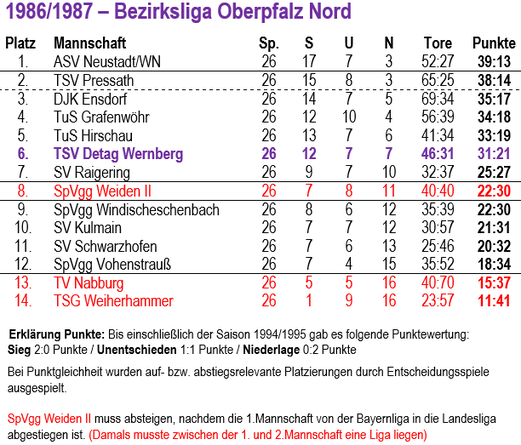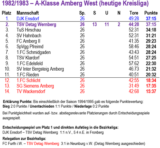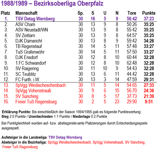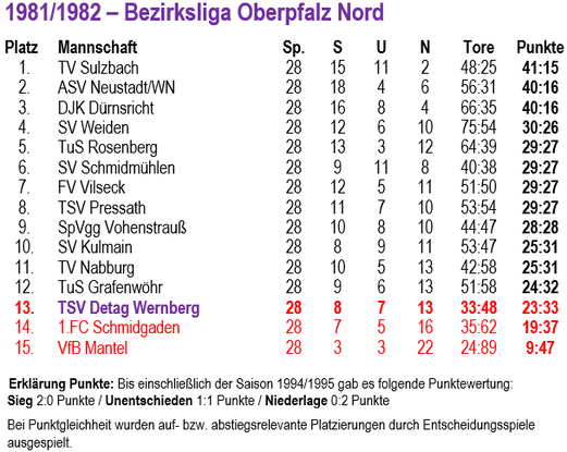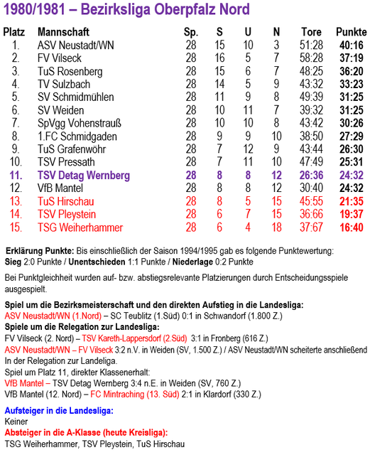 Tabellen 1.Mannschaft 1980/1981 bis 1989/1990