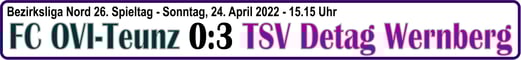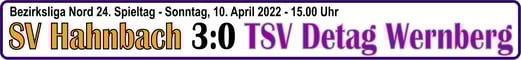 Stunde konnte Janik Hägler für Detag zwar verkürzen, aber Ahmet Erbey (78.) sorgte mit dem 3:1 für die Vorentscheidung. Erst in der Nachspielzeit konnte Patrick Luff nochmal auf 3:2 für Wernberg